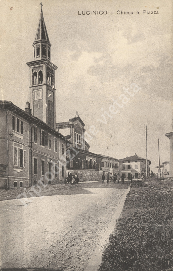 Entità e cause del danneggiamento: il giorno seguente la dichiarazione di guerra dell’Italia all’Austria Ungheria, il campanile settecentesco fu fatto brillare dai granatieri austriaci; il mese successivo, Lucinico divenne bersaglio delle artiglierie dei due eserciti nemici; il 28 novembre 1915 l’esplosione di un deposito di tubi di gelatina ridusse in macerie la chiesa parrocchiale (testimonianza dell’ufficiale medico Aldo Spallicci). |